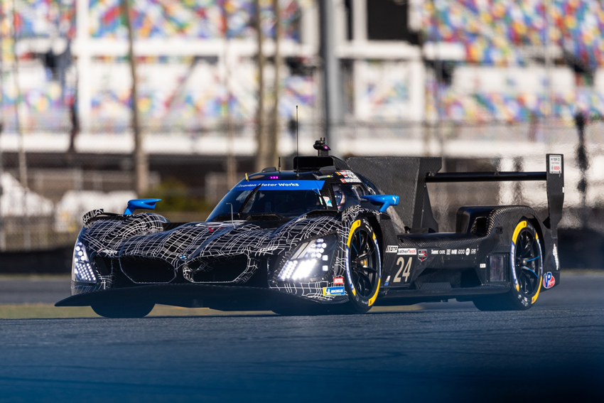La BMW M Hybrid V8 2026 en phase de test sur le circuit de Daytona avec ses nouveaux phares