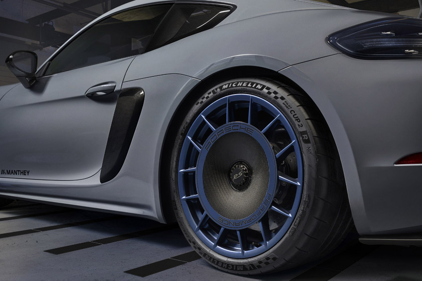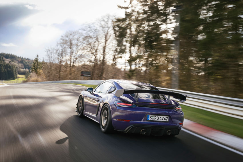 La 718 Cayman GT4 RS bénéficie d’un kit de performance lui offrant de meilleures performances sur circuit comme sur route.