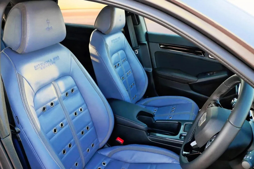 Le carrossier n'a pas apporté de modifications majeures dans l'habitacle. L'intérieur reste donc très japonais et garde les finitions d'une Civic de série, à l'exception d'un volant dessiné par Mitsuoka, d'une garniture spécifique sur le tableau de bord et d'un revêtement bleu avec un motif brodé sur les sièges à l'image. Les interrupteurs, les boutons et l'écran tactile proviennent directement du constructeur nippon Honda.